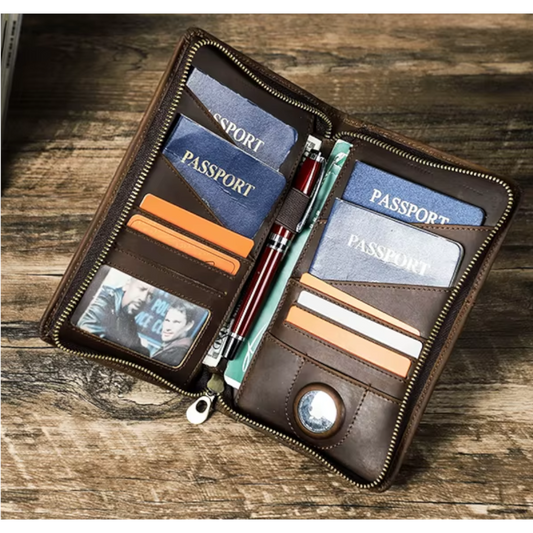 Billetera de viaje de cuero Crazy Horse con soporte para AirTag CONTACT'S