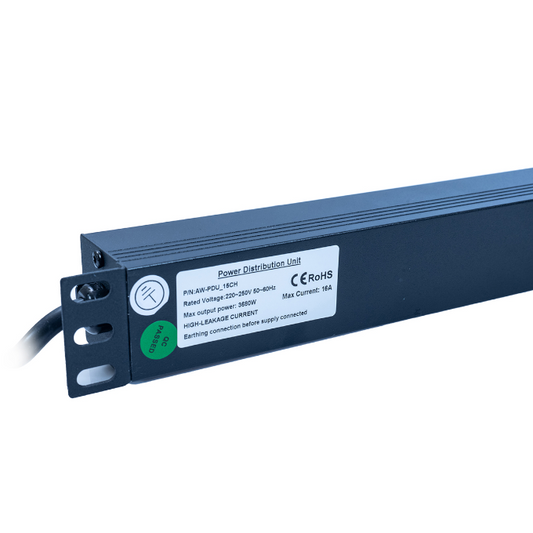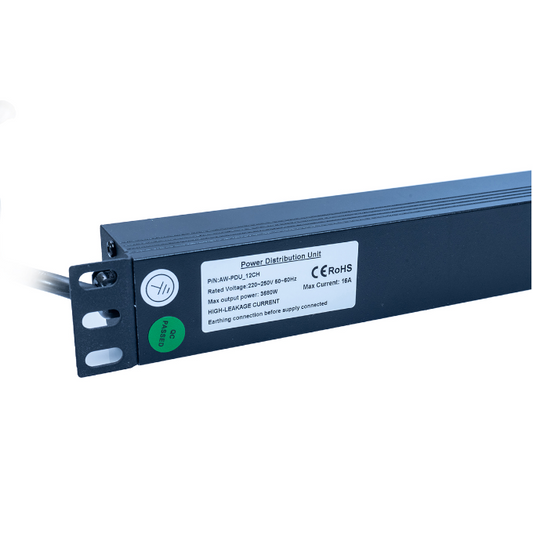 Unidad de distribución de energía - PDU 12 Enchufes 10/16A Vertical 22" con Protección