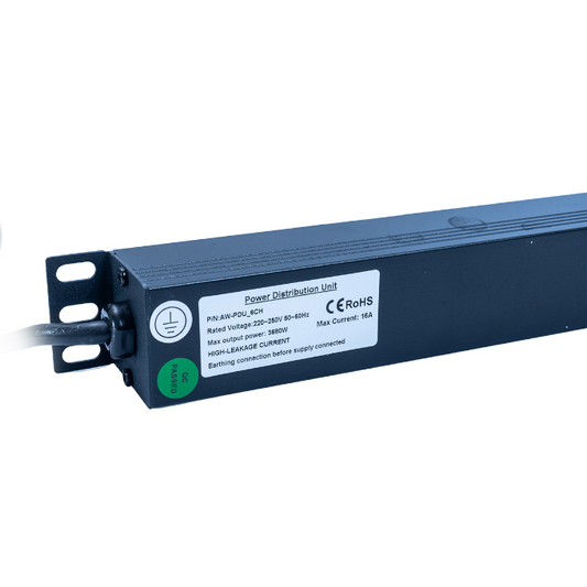 Unidad de distribución de energía - PDU 6 Enchufes 10/16A Rack/Bastidor 19" con Protección