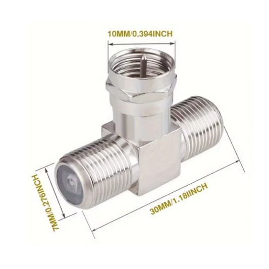 Conector F Macho a Doble F Hembra en Forma de T – Divisor de Señal Coaxial