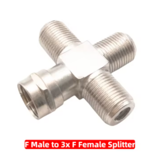 Conector F Macho a 3 Conectores F Hembra – Adaptador Divisor Coaxial