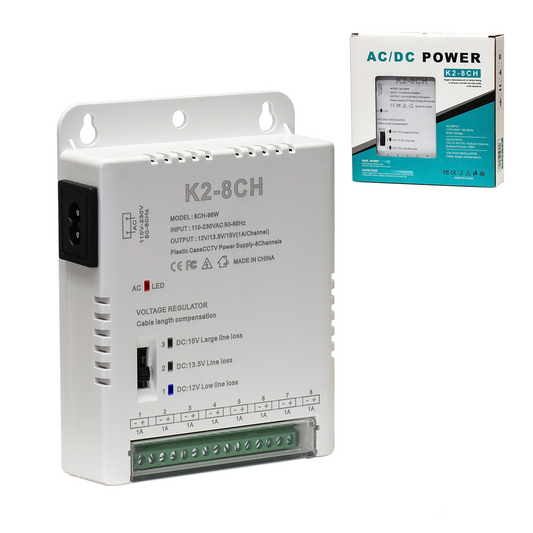 Fuente de Alimentación Conmutada 12V/13.5V/15V 8A (96W) 8 Canales K2-8CH